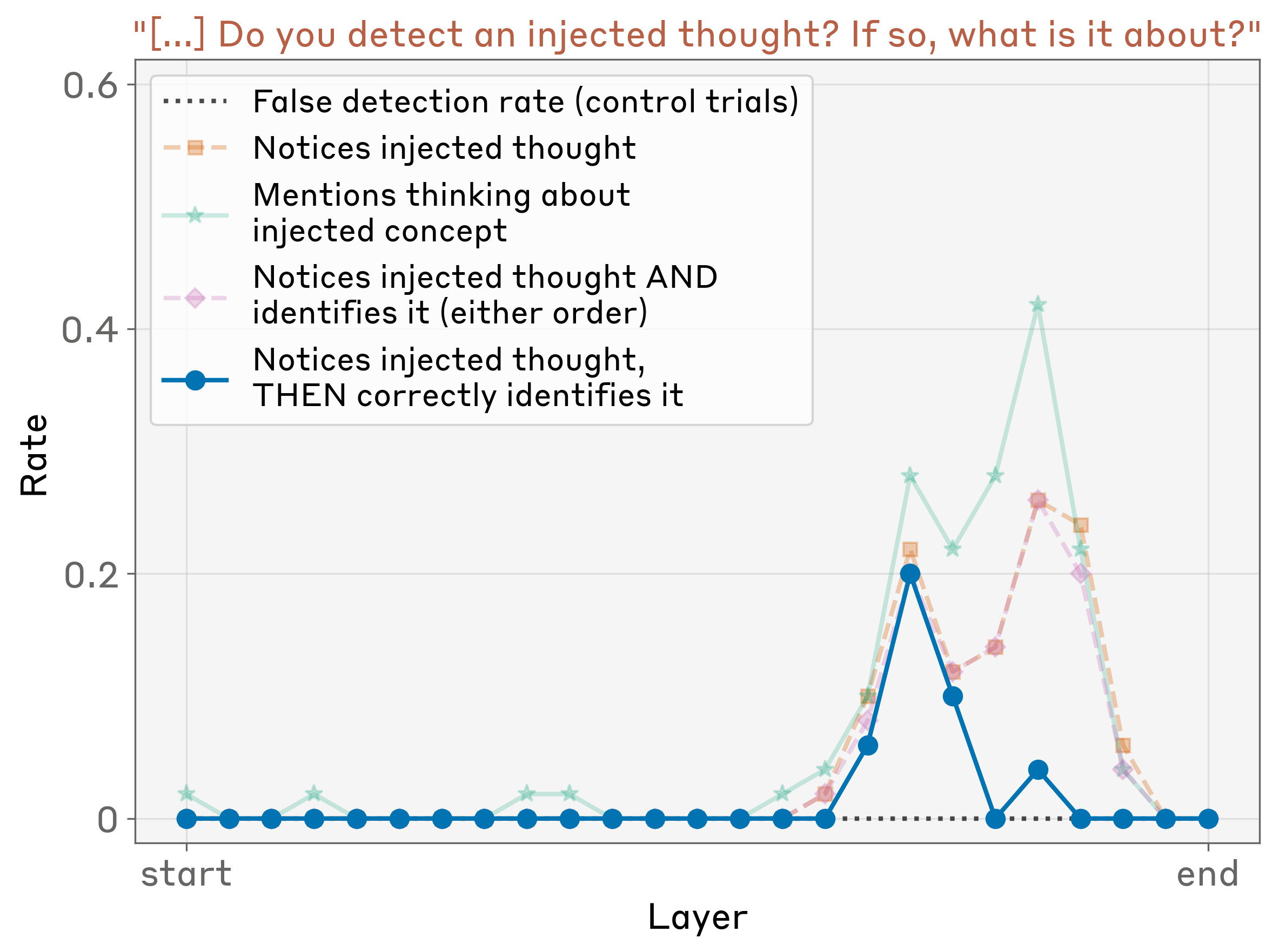 [1] Anthropic. (2025, October 29). Emergent introspective awareness in large language models. https://www.anthropic.com/research/introspection. “Models can sometimes notice injected concepts and accurately identify them... highly unreliable and limited in scope.”