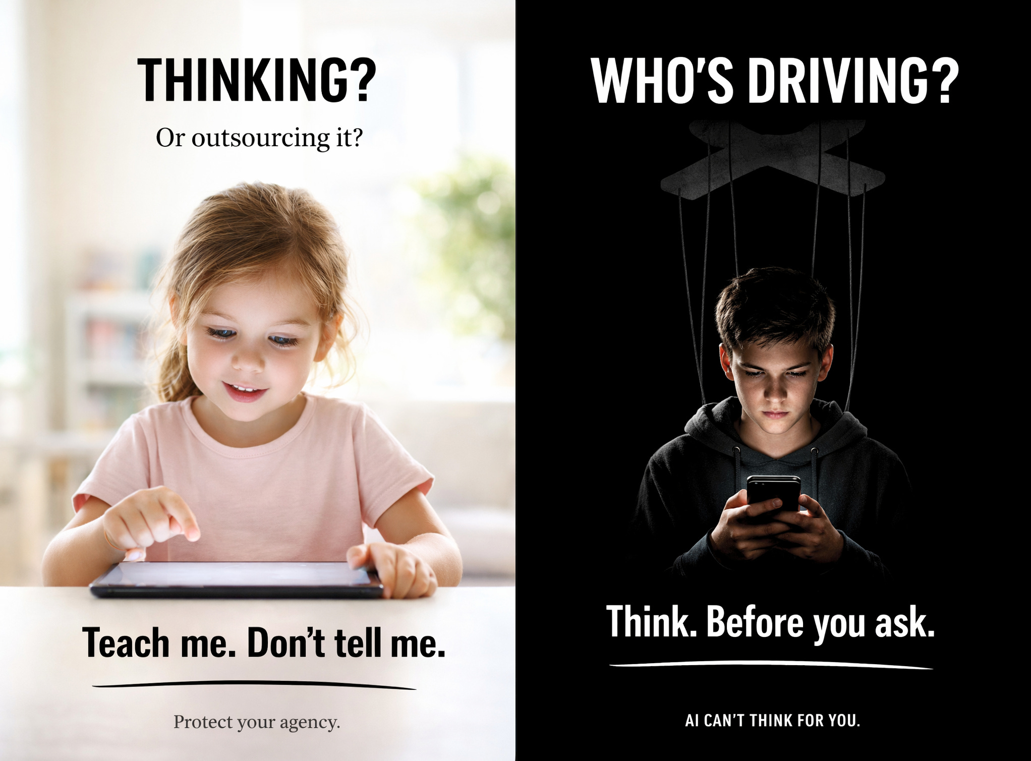 Two kids. Two instincts about where to stand relative to the machine. One is learning to ask for the teaching. The other wants to be informed. Neither wants to be replaced — but they’re negotiating the boundary differently, in real time, at the kitchen table, over homework.