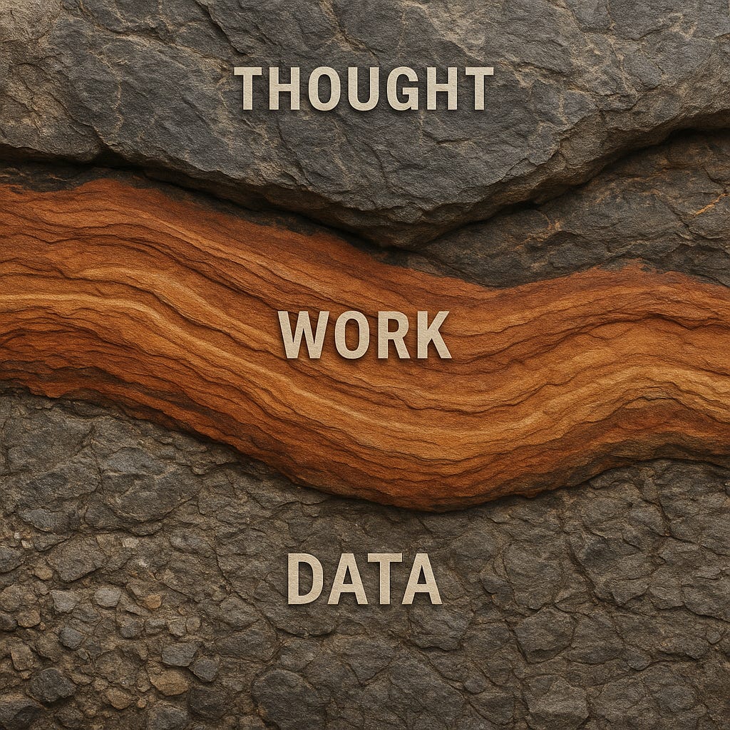 You propose three layers: data, operations, intent. But as I re-read your piece, I started thinking: we have always had those three layers. Organizations have long distributed them across roles and ranks. Some people collect and curate data. Others do the operational work, the sorting, weighing, reasoning, executing. Others sit at the level of strategy and intent. The hierarchy is not new. What is new is that the middle layer is thinning.