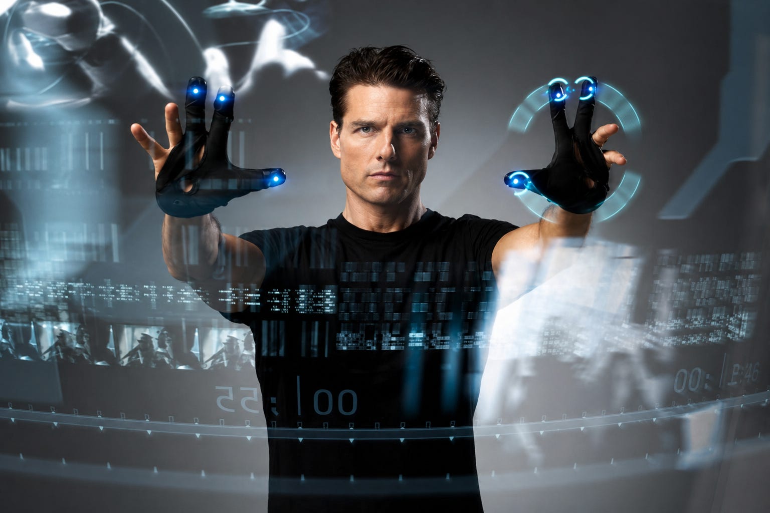 In Minority Report, Tom Cruise at the glass interface looks like the one making the call. He swipes through visions, tags what matters, and sends the machinery of response into motion. But he is not discovering the future. He is acting on what the system surfaces, what it frames, and what it never explains.