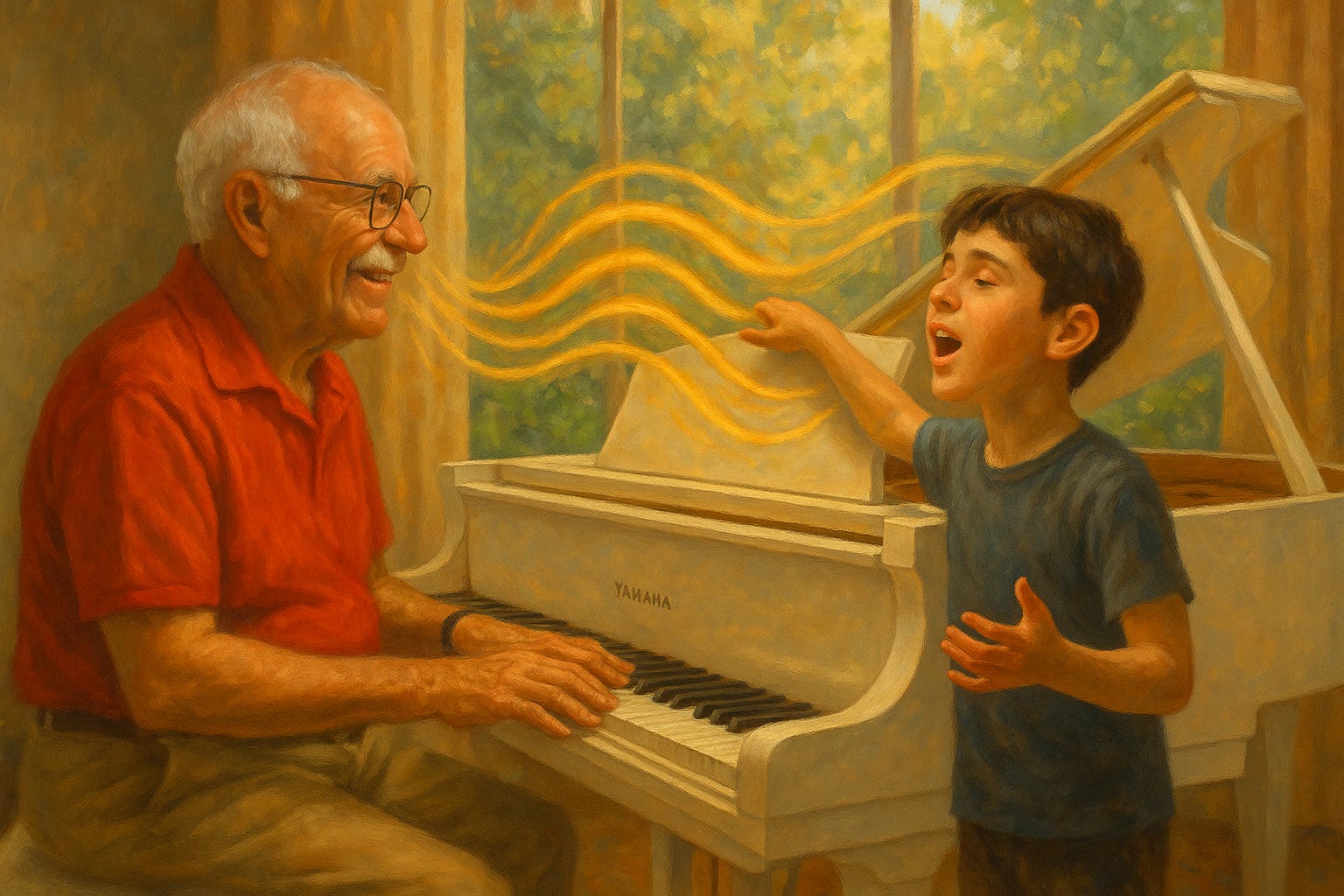 He'd pull me onto the bench, growl "Sing something," and let the chords rumble up the bones until I couldn't tell where his music ended and my voice began.
