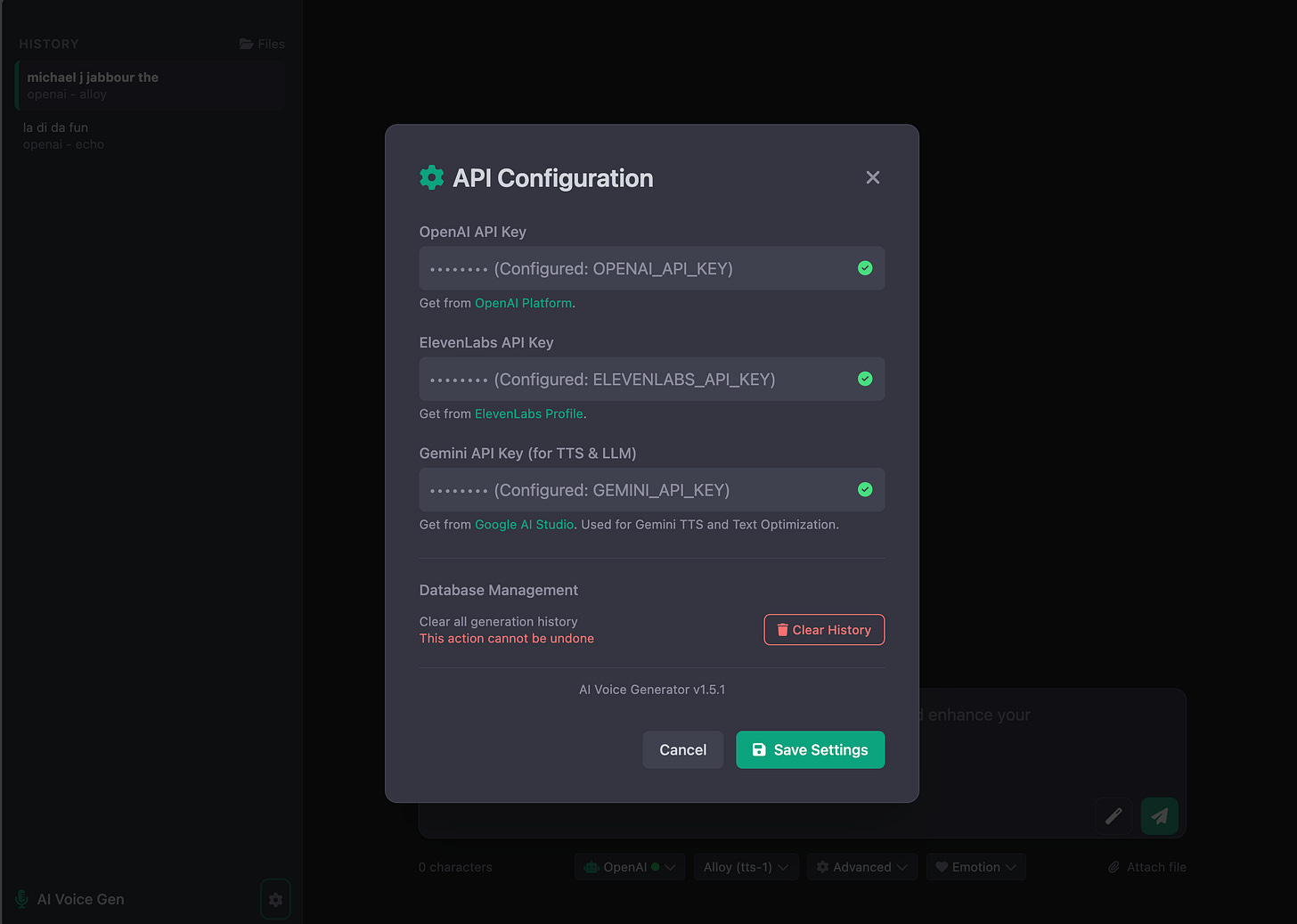 So, I built aivoicegen—an TTS generator that connects to OpenAI, ElevenLabs, and Gemini.