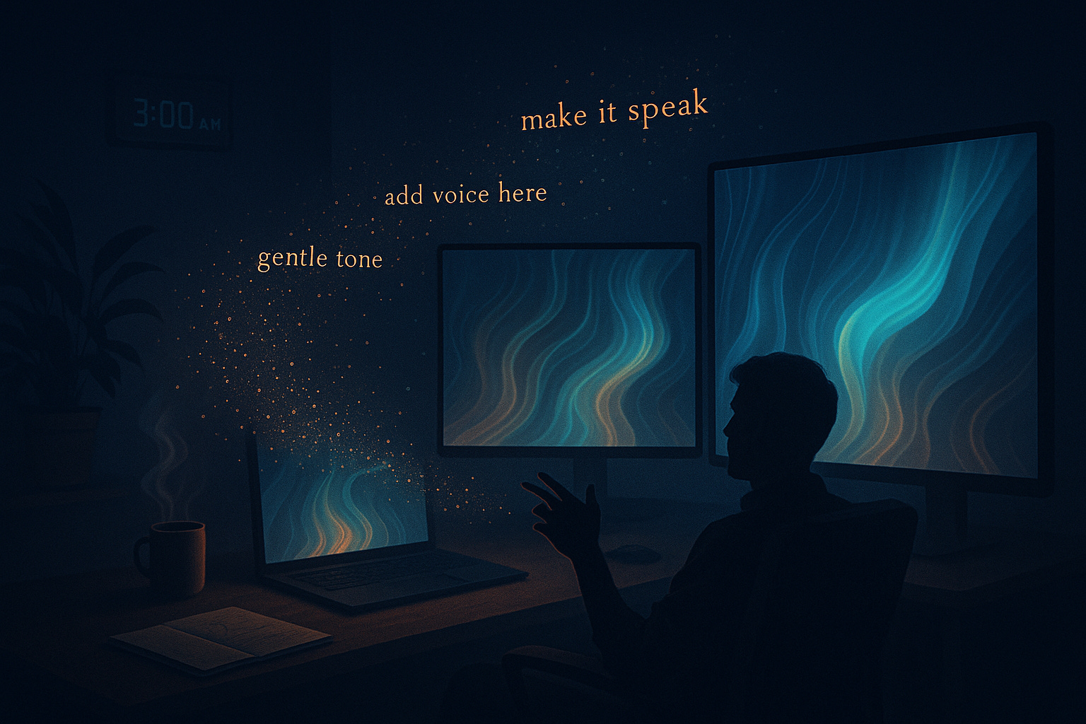 You speak the intention. You refine the rhythm. The system responds.